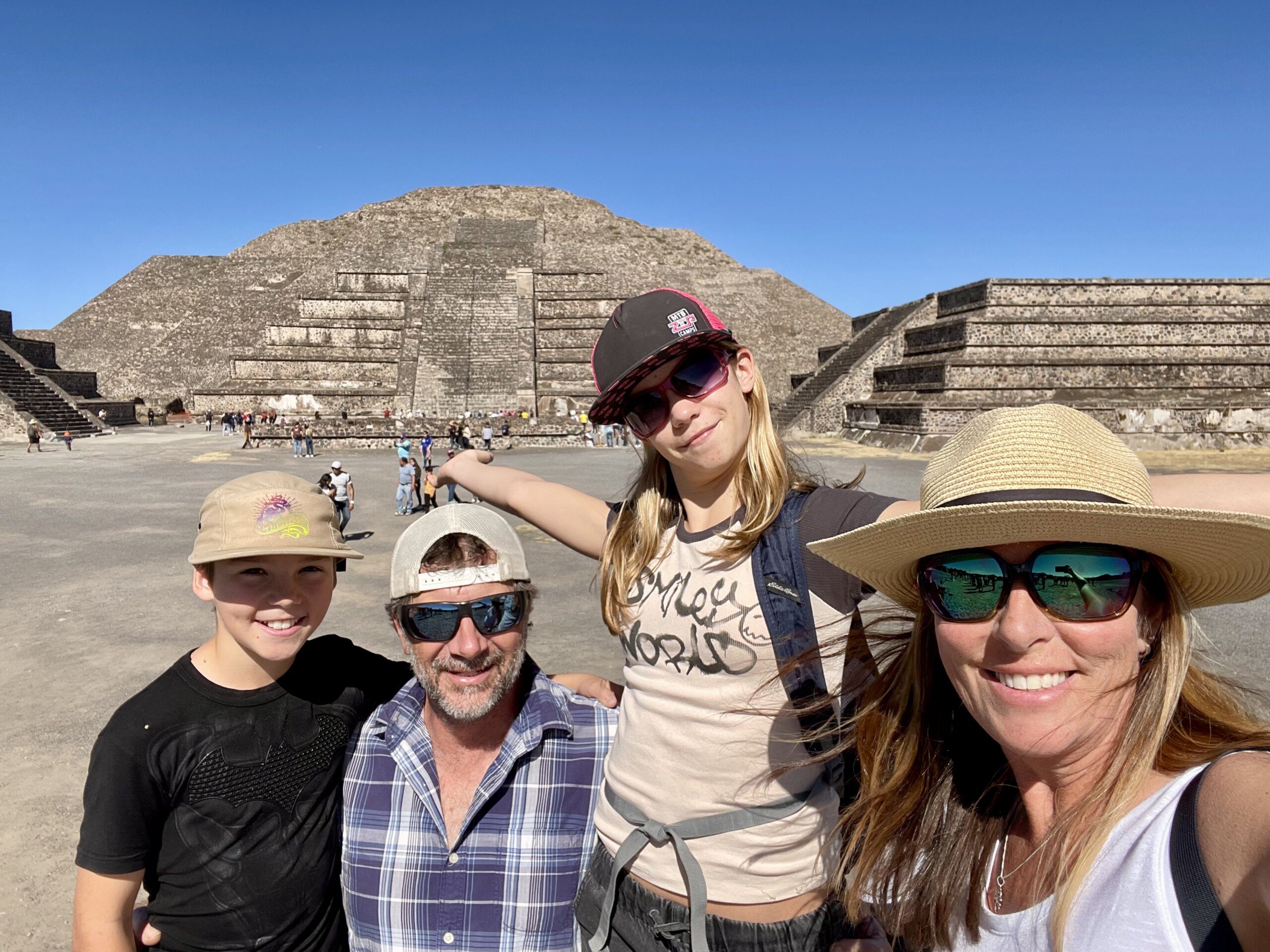 family of 4 standing together at the top of a volcano in El Salvador.