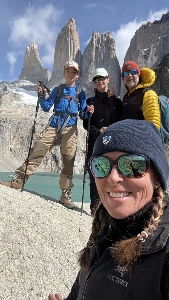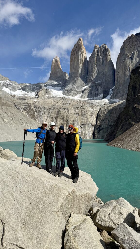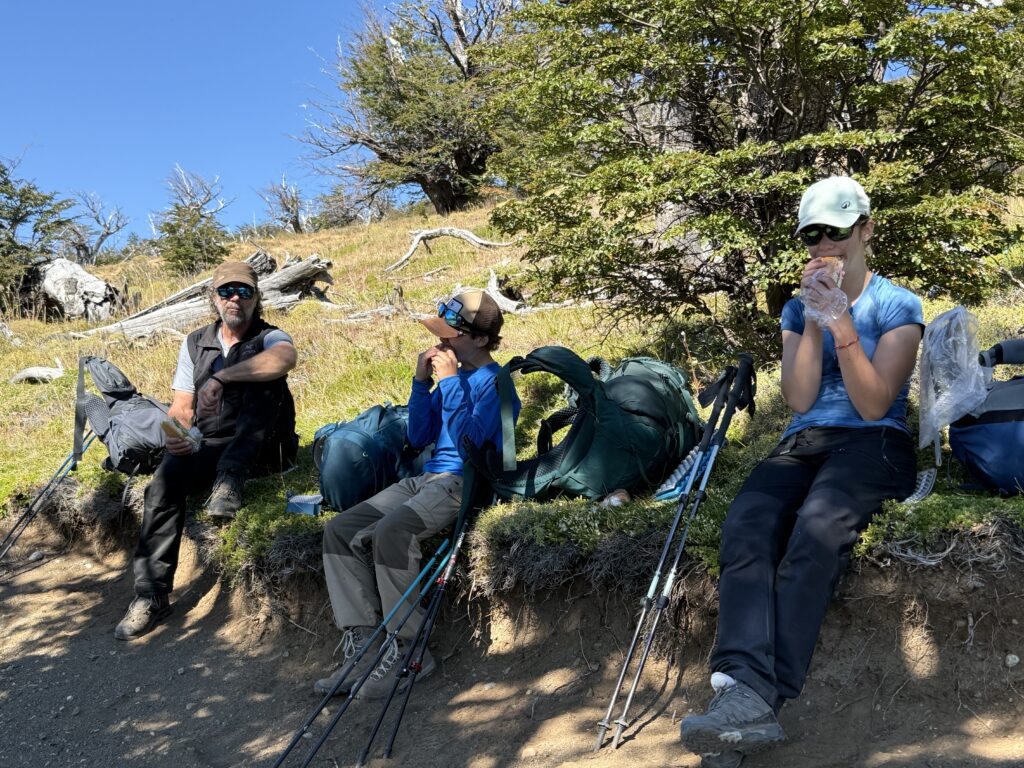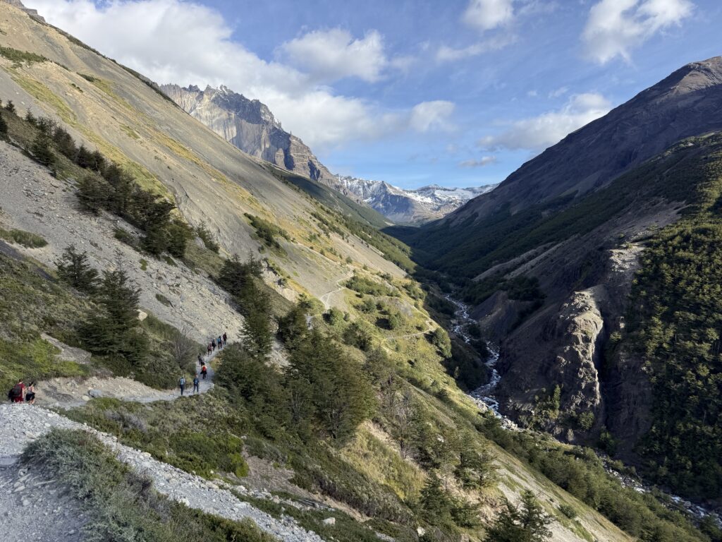 By 8:30am we were on the trail, swept into a human river of hikers… Hundreds of people strung out along the mountain like ants—some with full, heavy packs, others like us with lightweight day packs. The lower trails were braided with side paths, worn wide by feet and water. This is the most popular hike in the park, and arguably in all of Patagonia, with an estimated 2,000 hikers per day.